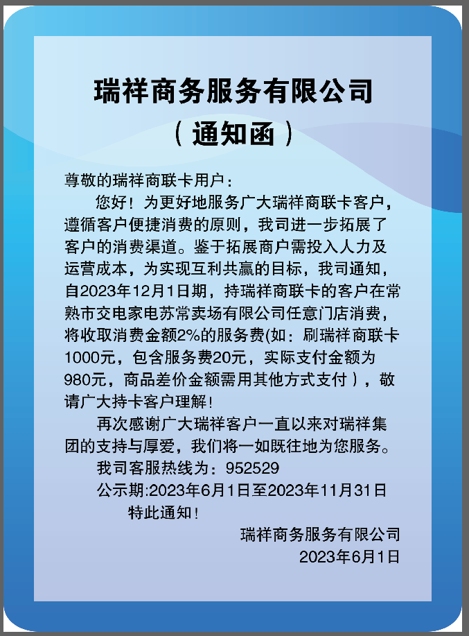 關(guān)于常熟交電家電合作調(diào)整公告
